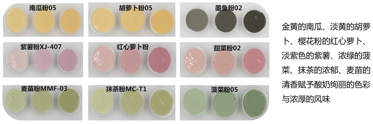 Second, the application of natural pigment & concentrated fruit and vegetable powder in milk preparation