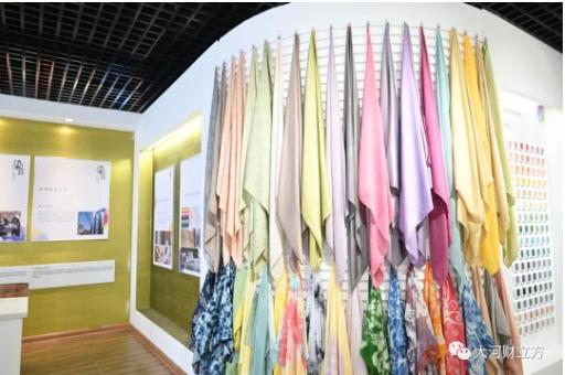 穿過展廳入口的七彩走廊,一個充滿童話色彩的世界展現(xiàn)在記者眼前。五彩斑斕的色素原料及成品,五顏六色的糖果、糕點(diǎn)和飲料,純植物色素印染、頗有些“莫蘭迪色”風(fēng)味的衣服與絲巾……